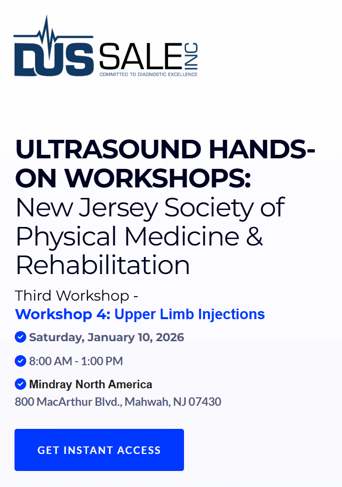 NJSPMR Free Webinar | April 24, 2025 | Ultrasound scanning demonstration and technique for denervation treatment of shoulder pathology and elbow epicondylosisThursday, April 24, 20257:00 PM – 8:00 PM Eastern TimeZoom